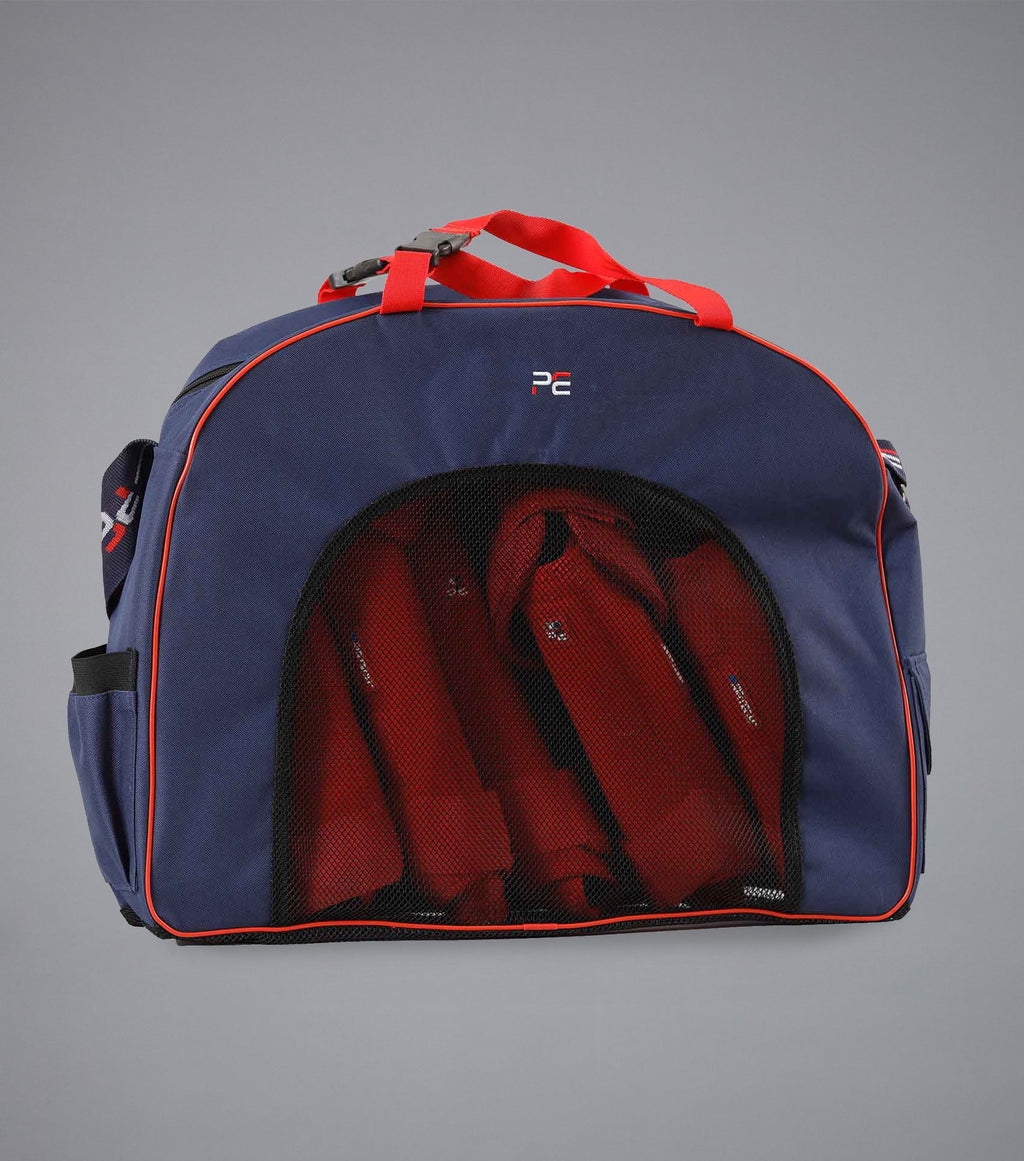 Made from durable and lightweight materials this carry bag is an everyday essential, ideal for safely storing your horse products or riding boots at home or for competitions. A mesh front allows you to easily see the contents without unzipping the top and handy pockets at either side are great for storing smaller items. Complete with a sturdy shoulder strap and carry handles, this super smart storage bag is a must-have this season.