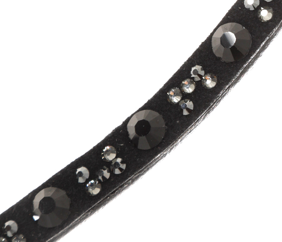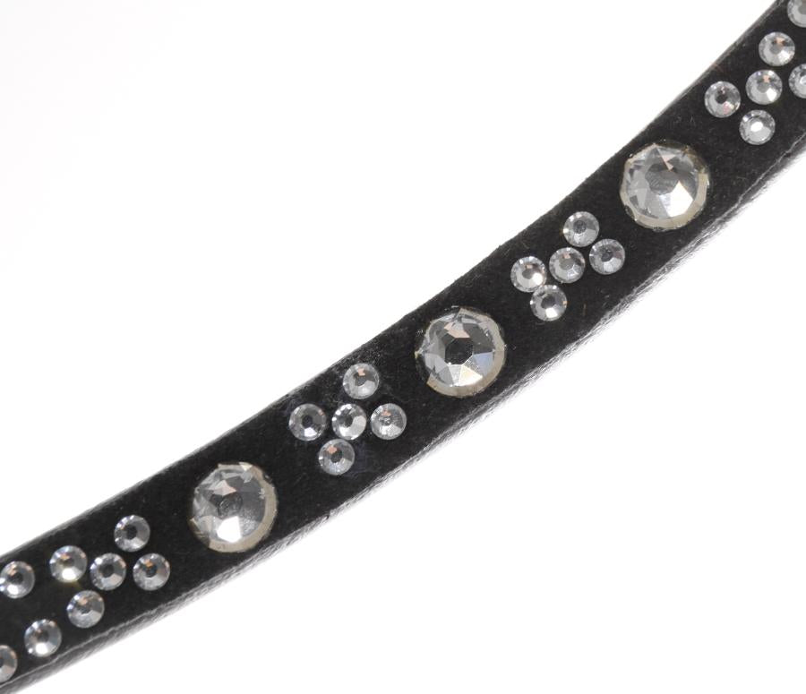 One for the fashionistas, this delicately shaped diamante browband features a hypnotic alignment of diamantes on a bed of luxurious suede, for those who like to stand out. Finished at either end with loops of sumptuous Italian leather.