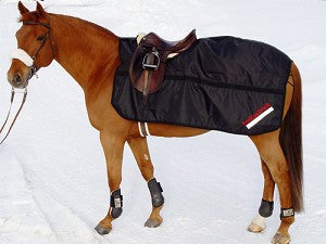The Back on Track Exercise Rug is designed to be used while riding, either for pleasure, or pre-competition, especially in cold weather. For competition horses, this garment is vital to be used right up until you enter the ring, as it can relieve any muscle tension in the back and hind-quarters area, and alleviate any arthritic conditions or back "niggles". It has a 420D showerproof outer layer, making it ideal for warm-up during cold showery days. It can also be used at home as a vital training tool, particularly in colder climates. It has a hook and loop touch tape attachment across the wither for ease of applying and removal and a fillet string behind. It has reflectors for twilight riding.