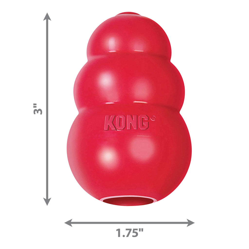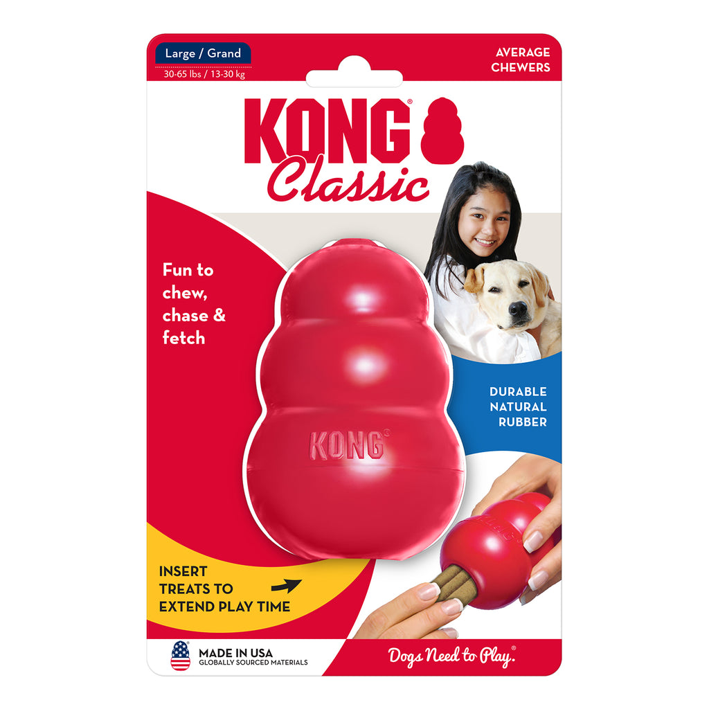 The KONG Classic is the gold standard of dog toys, beloved by dogs and their owners for over forty years. This iconic toy offers enrichment by helping to satisfy dogs’ instinctual needs. Made from KONG’s unique natural red rubber formula, it is ultra-durable and features an erratic bounce that is perfect for dogs who love to chew and play.