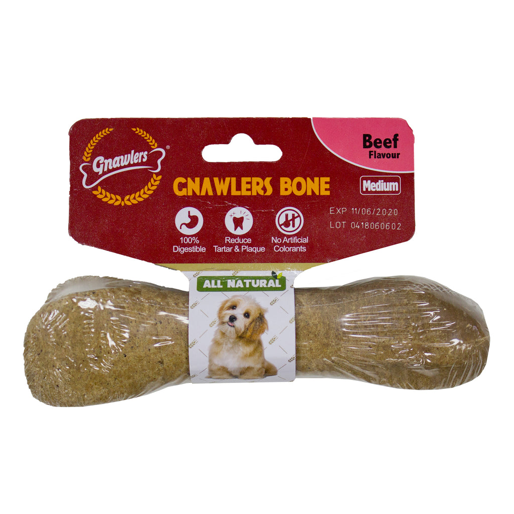 Reward your dog with the delicious and nutritious Gnawlers Bone Beef 12.5cm. These savory Beef chews are perfect for dogs who love a good snack. Made with natural ingredients, these treats are rawhide-free, 100% digestible, and free from artificial flavours and colourants. Your dog will go head over paws for the natural Beef flavour!