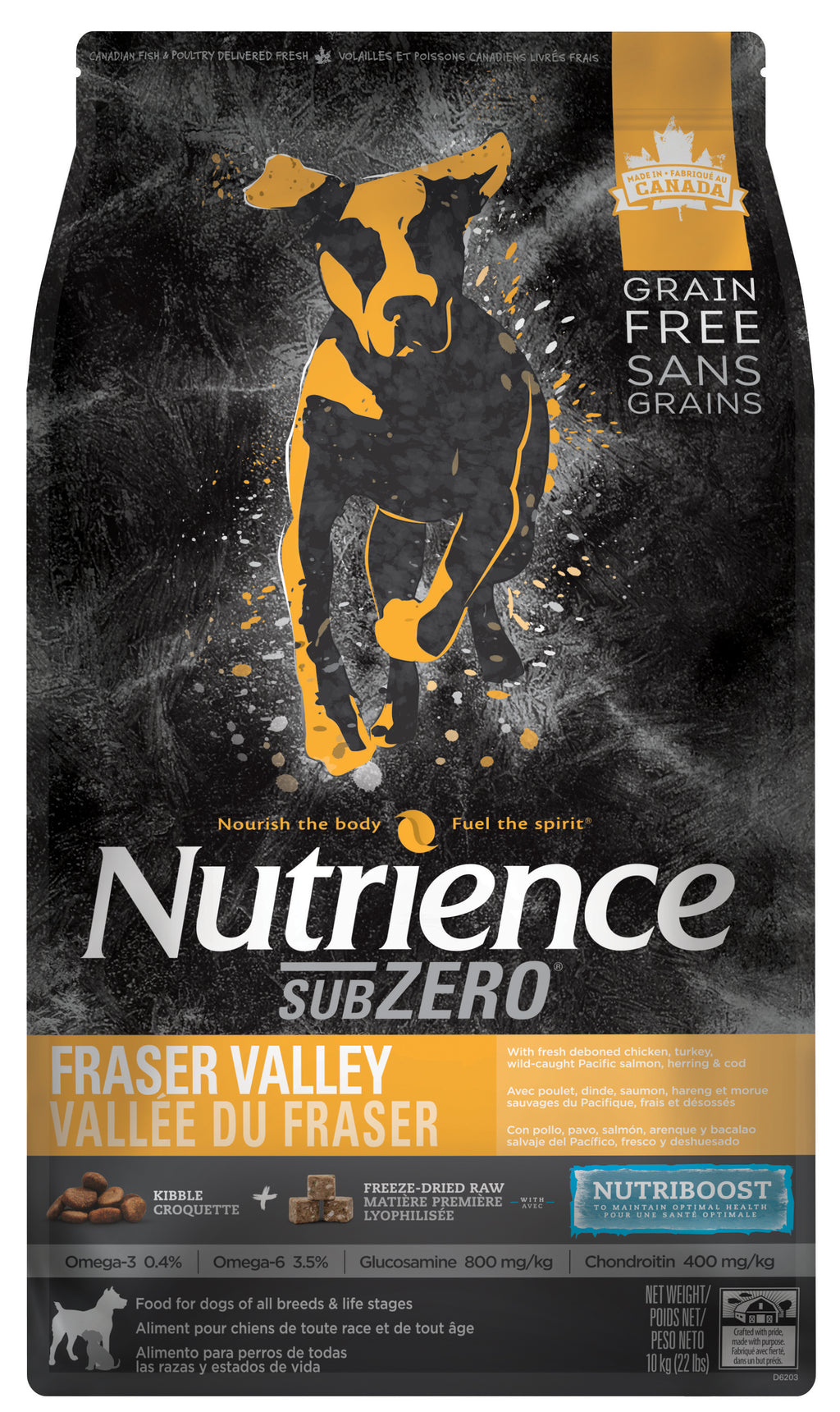 Fresh, never frozen, multi-protein formula. Deboned chicken & turkey, wild-caught Pacific salmon, herring & cod, with Nutriboost chunks of freeze-dried fresh chicken.