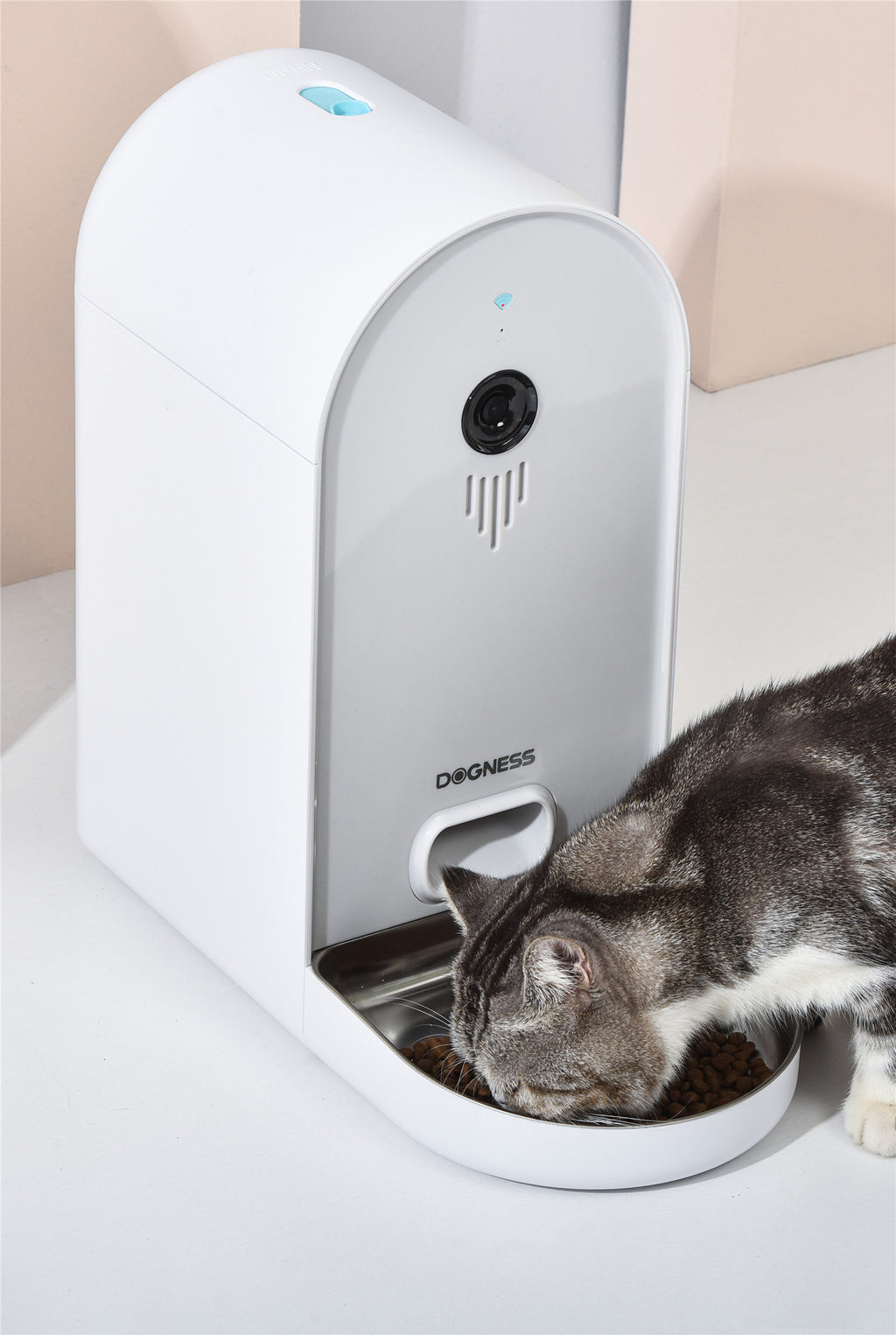Large capacity feeder for medium to large sized cats and dogs. It can remotely monitor your pet’s activities via free App, customize the feeding plan, take pictures and videos, interact with your pets remotely and so on.