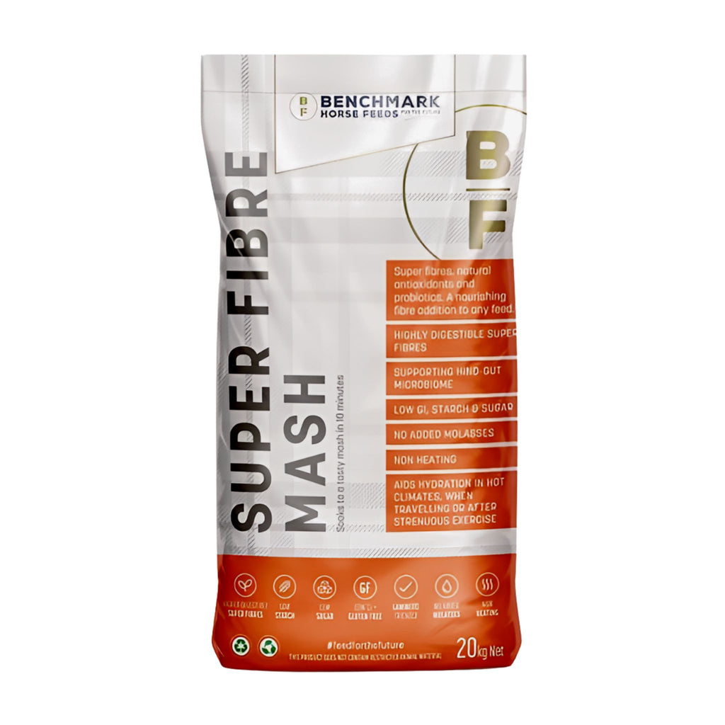 Benchmark Superfibre Mash® is a tasty fibre source that has much to offer for all horses and ponies. The benefits of highly fermentable lupin hulls and soy hulls have been harnessed and digestive support improved with the addition of pre and pro-biotics and Melofeed®, a natural source of antioxidant. Importantly, a special mineral premix has been included to balance iron, copper & zinc ratios to ensure Benchmark Super Fibre Mash® is a safe and balanced addition to any equine diet. Being low in sugars and starch, Benchmark Super Fibre Mash® is safe for the laminitic and EMS horse and pony.