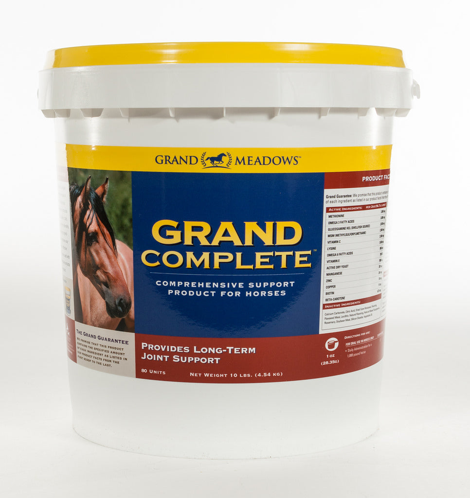 Consolidating ingredients into one comprehensive product reduces your costs, and provides your horse with an “all-in-one” support program. Grand Complete is even safe to use with reduced levels of other Grand Meadows products to further enhance your horse care program.