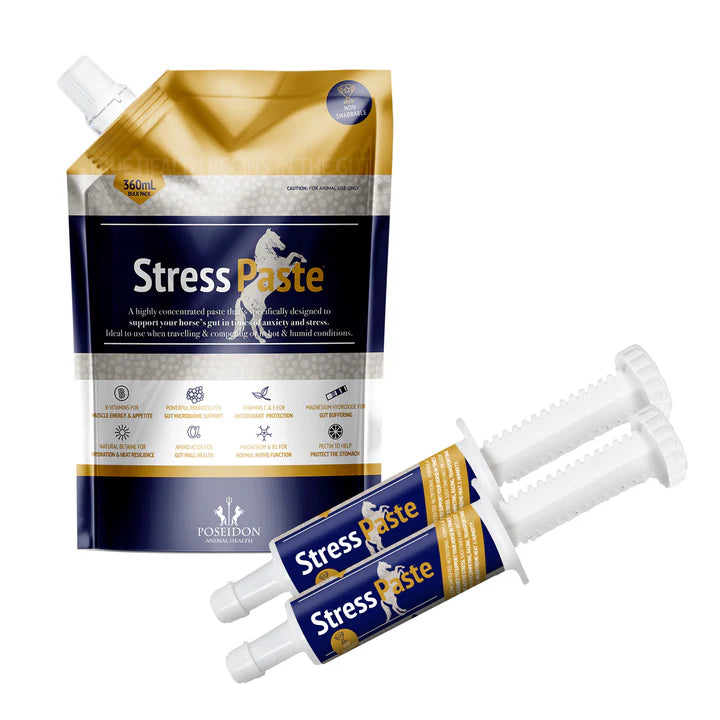 Stress Paste contains ingredients selected to support the horse’s gut and muscle physiology in a way that helps them deal with the effects of stress. This action is designed to reduce the impact of your horse's stress on their performance, behaviour and recovery.
