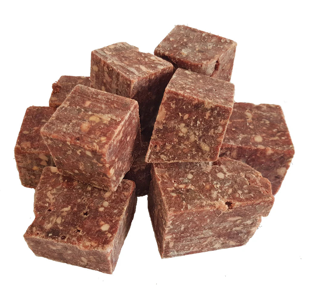 The Wallaby and heart are minced together into 90g medallions. They contain ground bone.