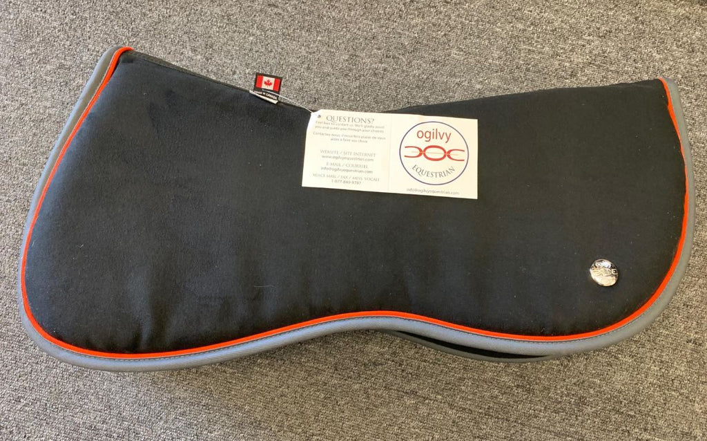 Made of resistant poly cotton twill, protected with stain resistance on the outside. The Profile Pad also features a unique V-top shape that makes all the difference! It reduces friction at the withers and on the horse’s back. Its unique shape sets the pad firmly at the base of the withers preventing it from slipping. Composed of our special quick-dry anti-bacterial/anti-fungal brushed poly on the inside, and of high performance hollow core fiber that wicks away the moisture from your horse and dries quickly after use.