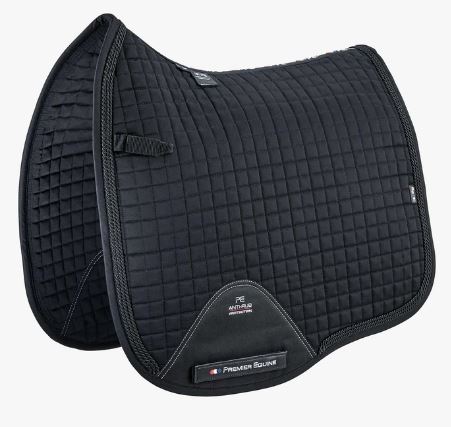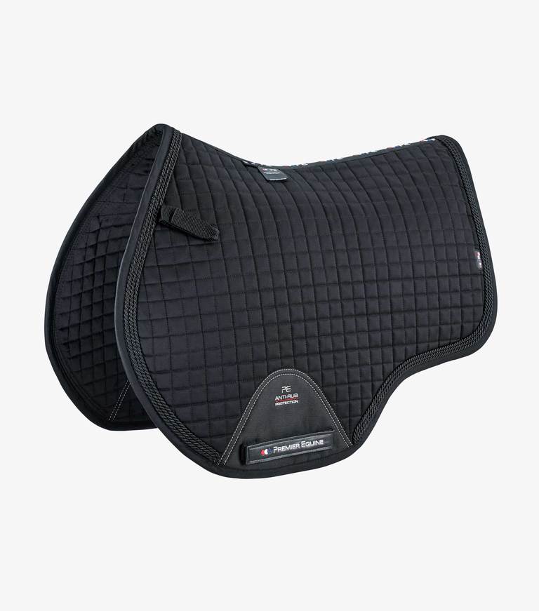 Moisture and sweat are drawn through the pad by anti-wick fibers present in the filling. A 600 denier polyester girth panel provides anti-rub protection. Complete with decorative twisted ropes, a cut away hem and double Velcro adjustable straps for practical girthing. The ideal saddle pad for those wanting to make a bold statement in the equestrian field.