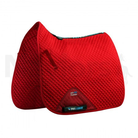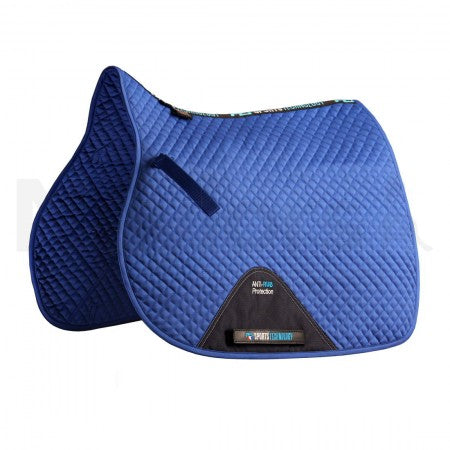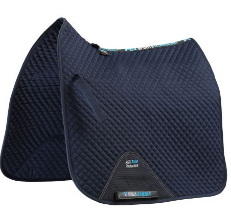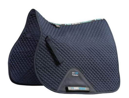 A high quality cotton GP/Jumping or Dressage square with a 2520D ballistic nylon girth cover for anti-rub protection. Moisture & sweat are drawn through the pad by anti-wick fibers present in the filling. Complete with double velcro adjustable straps for practical girthing, this pad is a must have for everyday & competitions!