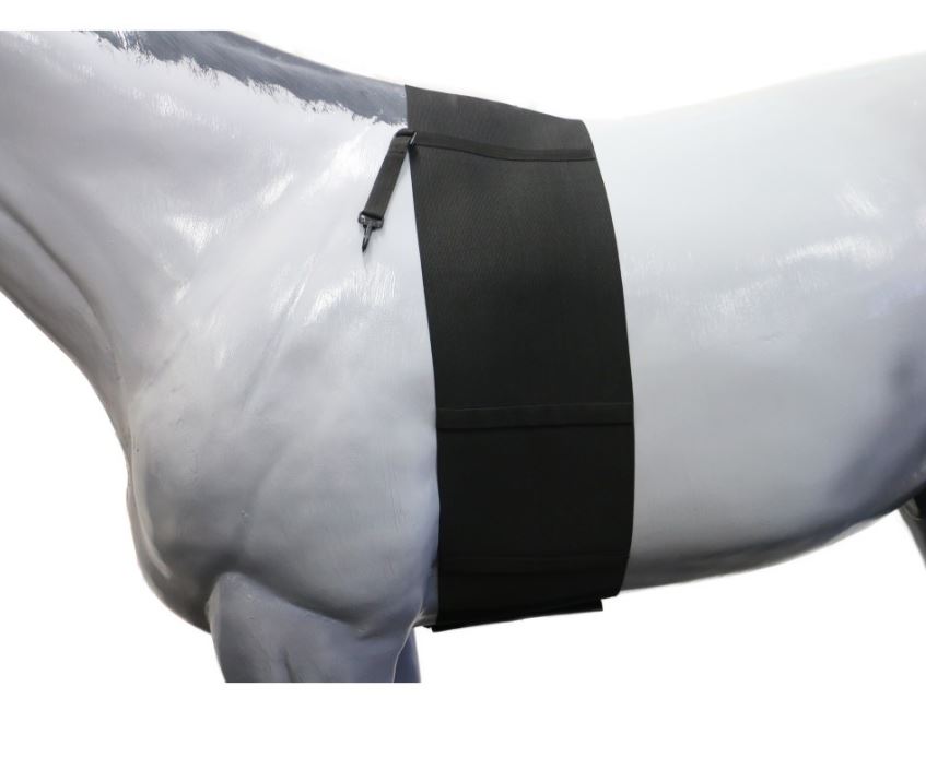 The Equi-Prene Body Bandage is designed to be wrapped around the girth area of the horse's body in the saddle area, the closure fastening is underneath using Velcro. We recommend that the Body Bandage is locked into place using the side straps to secure to the girth, this way it will not slide around on the horse's body.