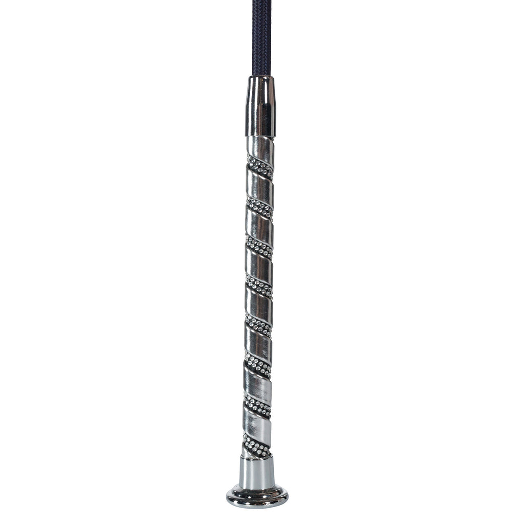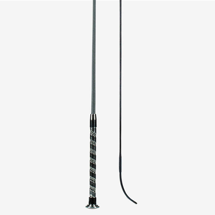 A lovely well-balanced dressage whip includes a crystal cap and collar and a leather-like grip.