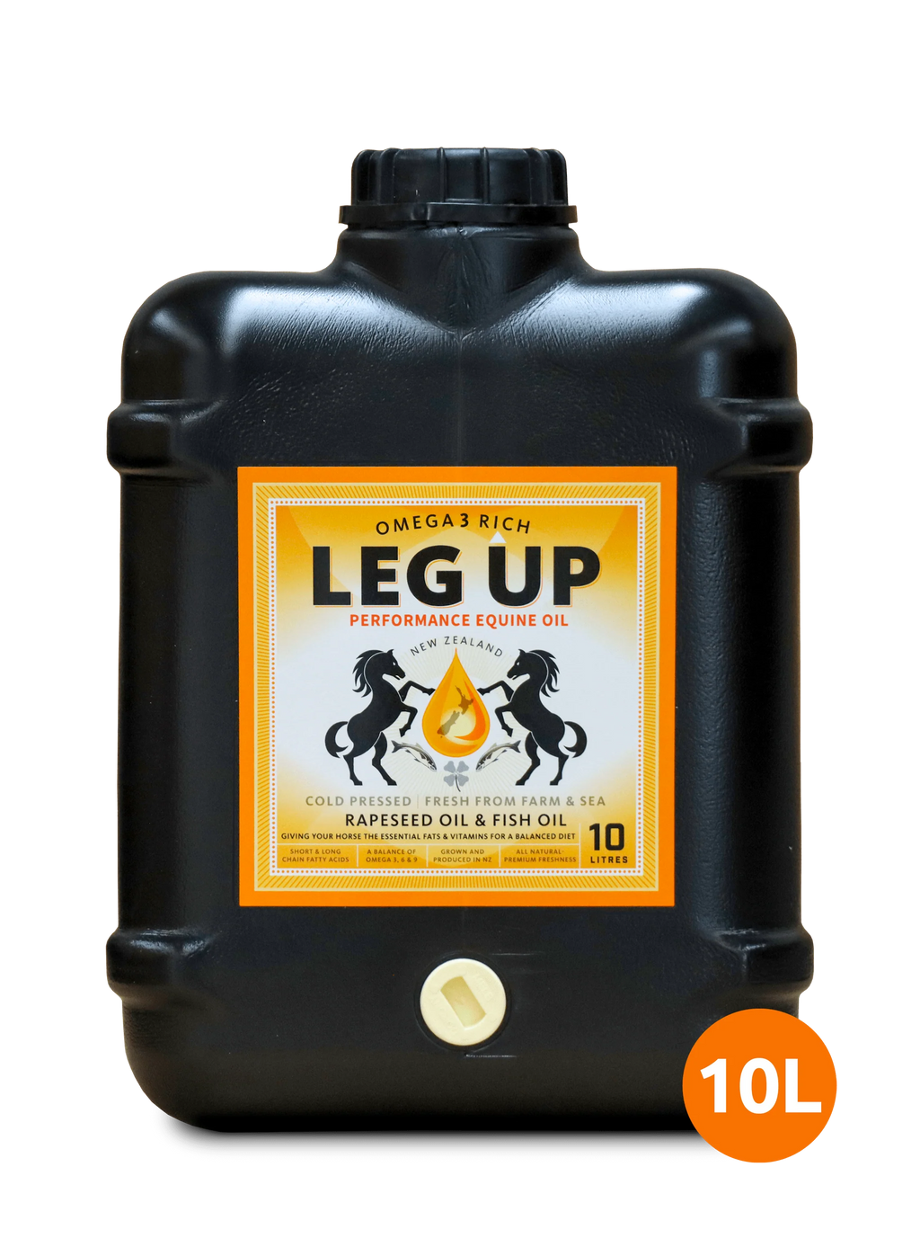 Leg Up Equine Oil has been specially formulated to provide the horse with its nutritional and therapeutic requirements and to assist in gaining peak performance.